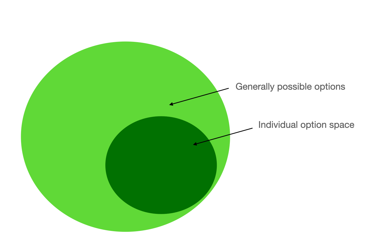 Another thing to look for is how much someone can move. You should try to figure out - for all the actors or stakeholders - what their option space looks like. When looking at a negotiation, it is less helpful to assume that all possible solutions are available - almost every actor will be limited by a number of different factors, or nested negotiations that they are a part of. So determining their individual option space is really key.